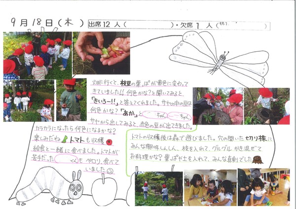 親子遠足でふじくらますも果樹園にりんご狩りに行きました。 大型バスにお父さんお母さんと一緒に乗り、わくわくのこどもたち。 果樹園では、自分たちでりんごを収穫し、さっそく試食。 とっても甘くておいしいりんごでした。 あいにくのお天気だったので、園に戻ってからお弁当を食べました。 みんなで食べたお弁当はとってもおいしかったです。 | ||